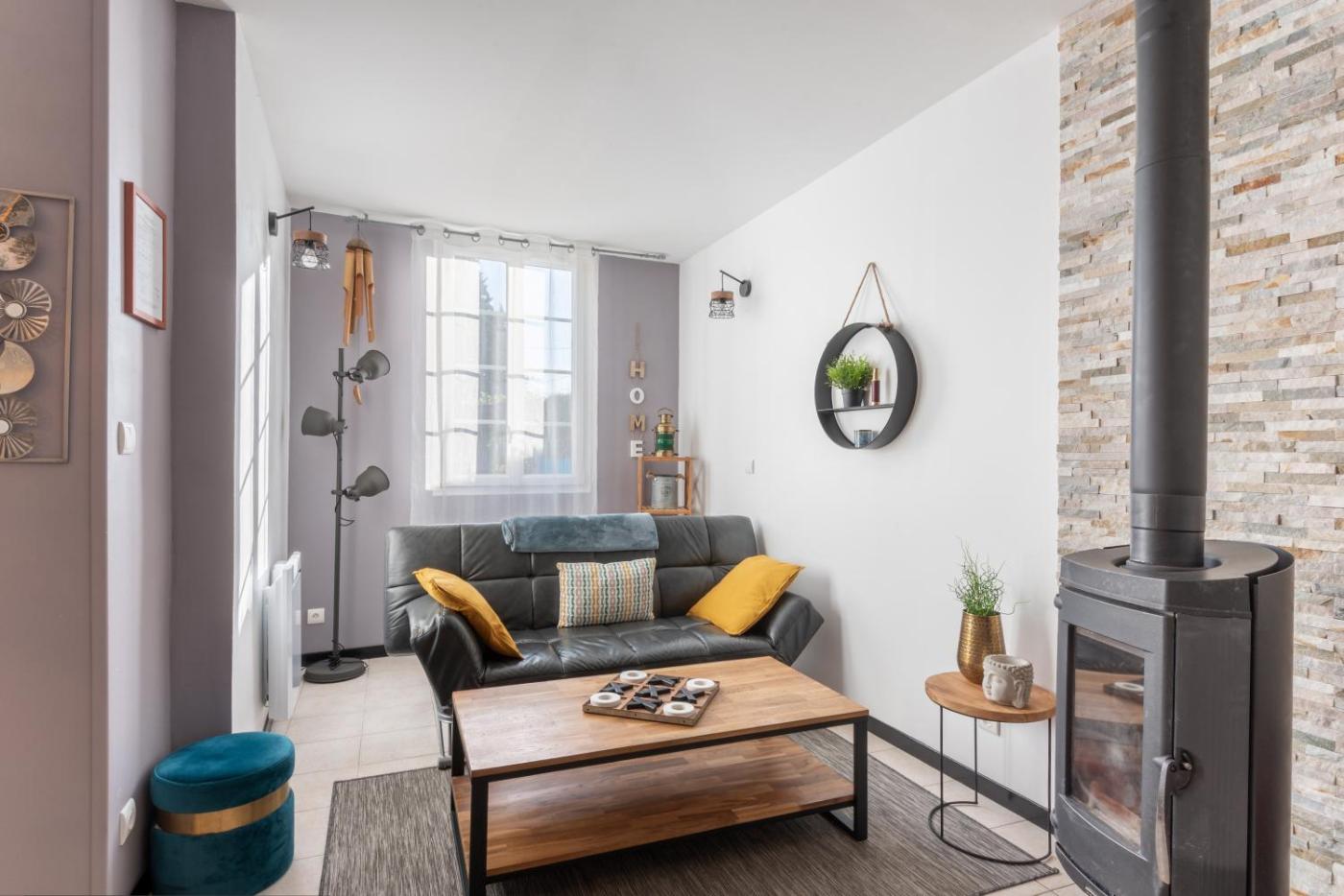 Maison 2 Chambres. This holiday homes standout feature is the fireplace. Featuring a private entrance, this holiday home is comprised of 1 living room, 2 separate bedrooms and 1 bathroom with a bath and a hairdryer. Guests will find a stovetop, a refrigerator, a dishwasher and kitchenware in the kitchen. The holiday home also has a barbecue. The holiday home features parquet floors, a seating area with a TV, a washing machine, a coffee machine as well as garden views. The unit offers 3 beds.